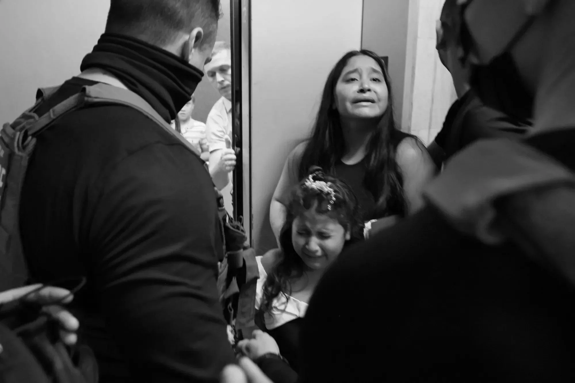 El ICE identifica a los inmigrantes recientes con casos pendientes en los tribunales de inmigración. Sus agentes se reúnen en los juzgados y en los pasillos de los tribunales de inmigración de todo el país y esperan a que esos inmigrantes se presenten a sus audiencias. Cuando llega uno de los objetivos, el ICE solicita rápidamente al juez de inmigración que preside el caso que lo desestime. Los jueces, empleados del Departamento de Justicia, suelen ceder a las peticiones del ICE y desestimar los casos de los inmigrantes, negándoles incluso la oportunidad de defender su derecho a permanecer en el país. No hay audiencia. No hay veredicto. Con sus casos desestimados, los solicitantes de asilo y otros inmigrantes que luchan por obtener su estatus pierden sus protecciones legales contra la deportación, lo que los convierte en blanco fácil para la expulsión acelerada. Son rápidamente esposados por agentes anónimos del ICE, empujados a camionetas en ralentí y desaparecidos en centros de detención notoriamente superpoblados y remotos.