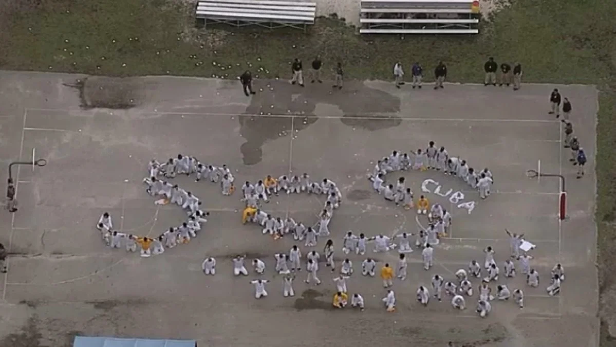 Detainees at the Krome Detention Center in Miami, Florida and the Bluebonnet Detention Facility in Anson, Texas spell out “S-O-S” with their bodies.